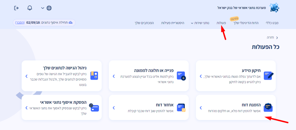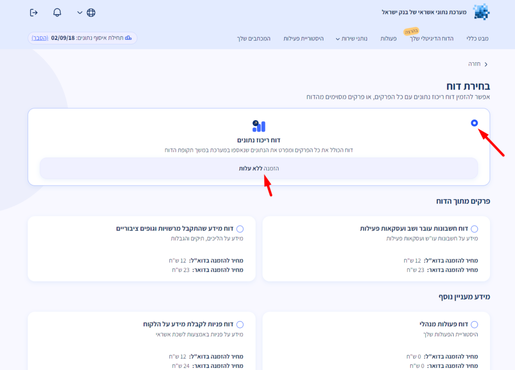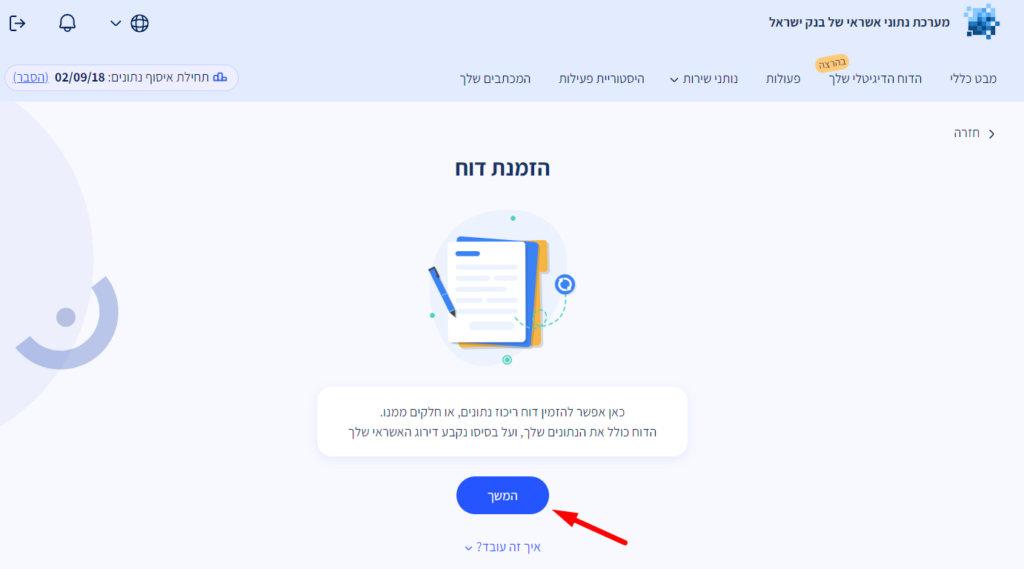 הפקת דוח ריכוז נתונים היא תהליך פשוט, דיגיטלי ומהיר. ניתן להפיק אותו בחינם פעם בשנה קלנדרית.